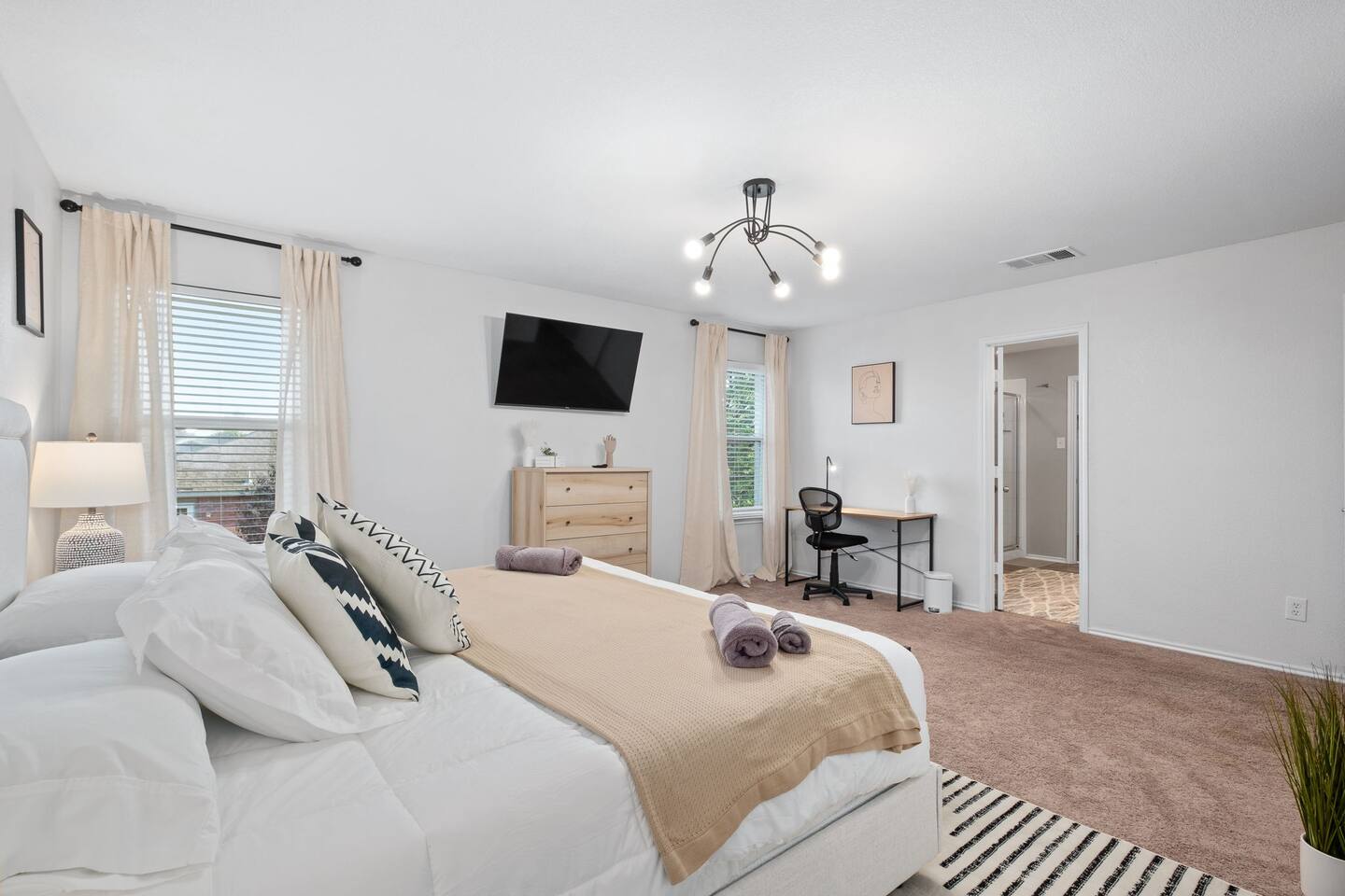 Luxurious home in the center of DFW! This 3,000 sqft home comes with an Entertainment Loft, fully loaded kitchen and numerous amenities. ✔ Master bedroom with a KING size bed, TV & work space ✔ Two Separate Game Rooms ✔ Close to a pond park & a lake ✔ Outdoor patio with a fireplace & BBQ grill ✔ Pool table, interactive dartboard game, Xbox ✔ Perfect for Social Media props Located in a great quiet neighborhood! Minutes away from the best dinner spots, shopping centers, AT&T stadium & The Epic.