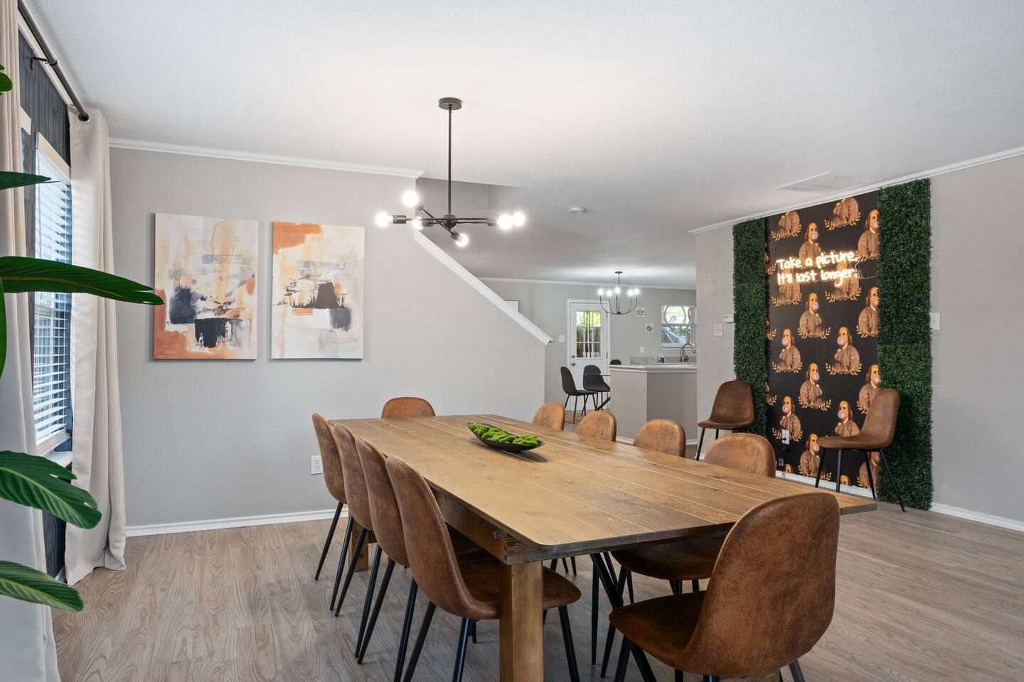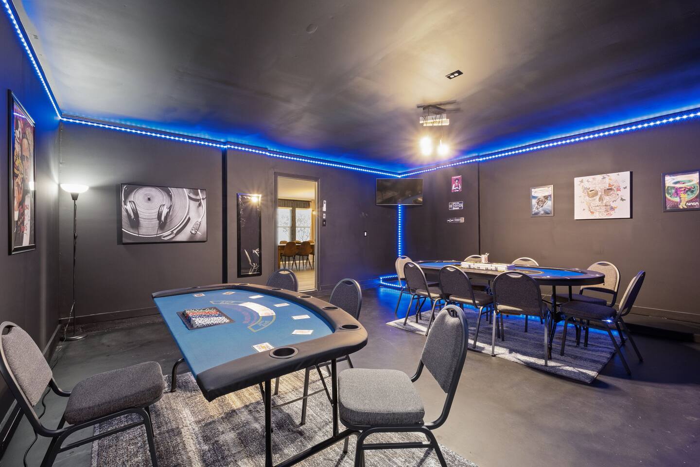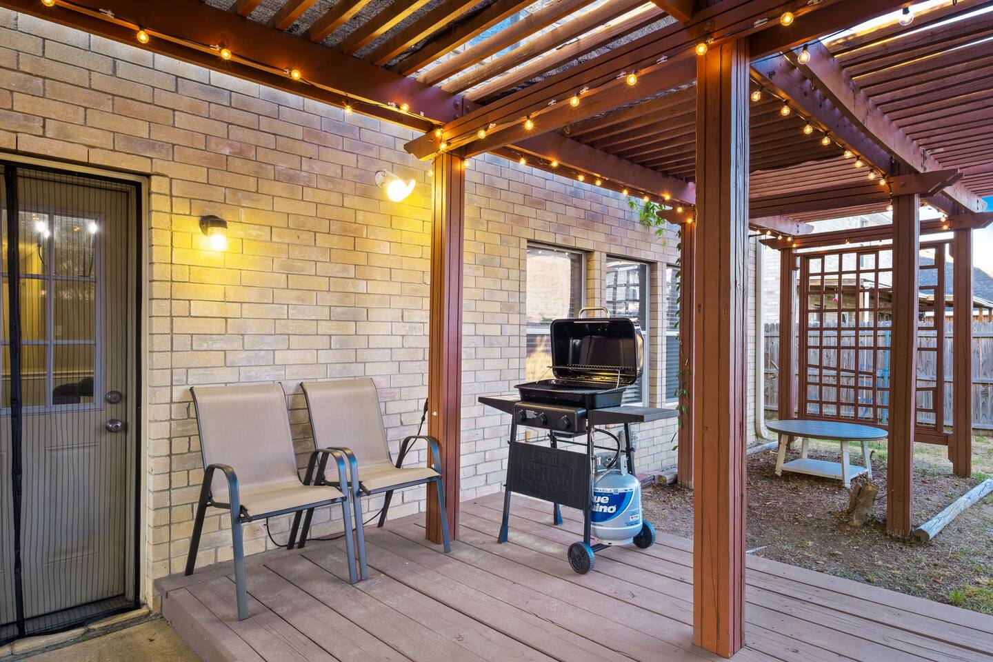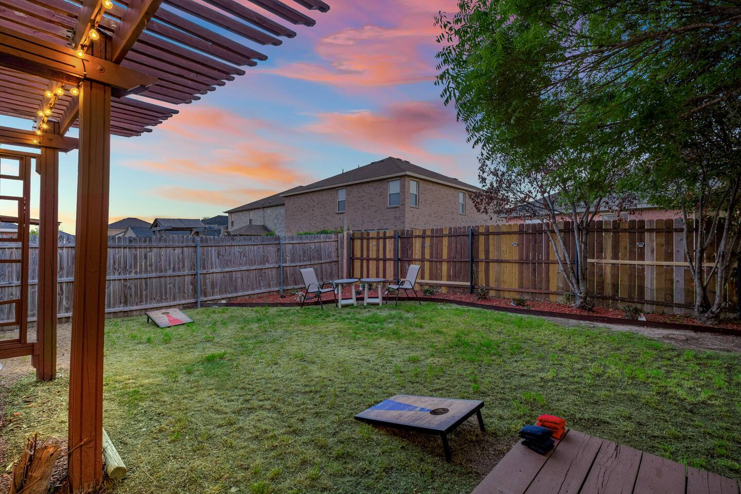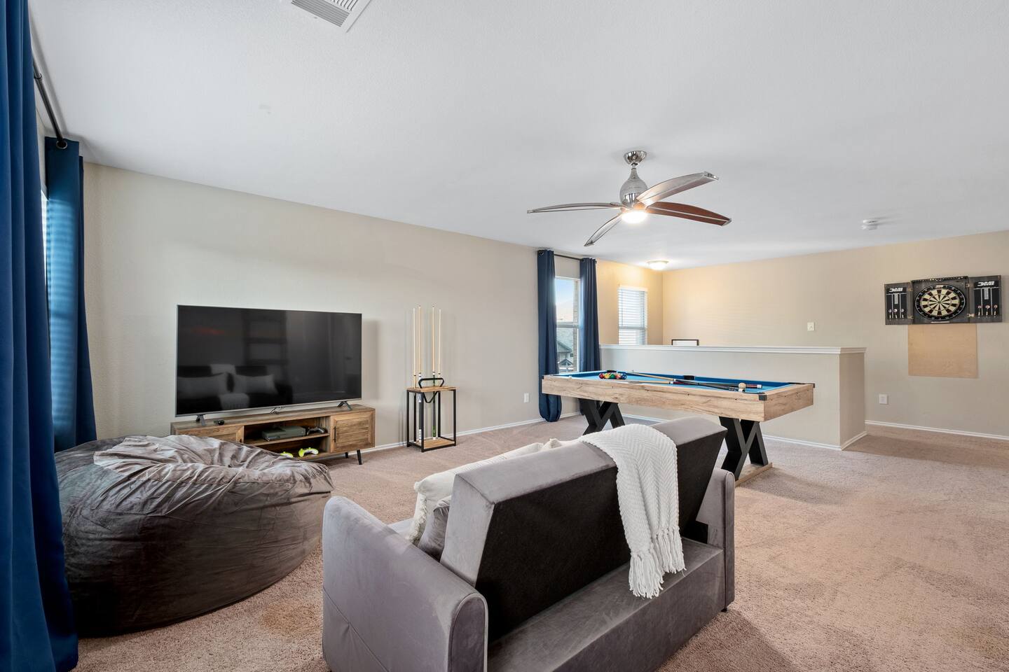 Entire Luxurious Epic Home in Grand Prairie, just outside of Dallas. This Luxurious 3,000 sq ft home comes with numerous amenities: ✔ Master bedroom with a KING size bed ✔ Game Room for the adults (Poker table and Blackjack Table) ✔ Game room for the kids (Xbox, Interactive dartboard) ✔ Outside Patio for family/group gatherings ✔ Luxury Pool table ✔ 6 separate Smart TVs ✔ Washer and Dryer on site ✔ Master bathroom with a hot tub (perfect for couples) ✔ Equipped with a BBQ ✔ Outdoor fireplace ✔ Bicycles to ride to a nearby pond park ✔ Located near a lake ✔ Social Media props ✔ Fully loaded kitchen with a smart refrigerator ✔ Backyard for outdoor activities ✔ Located near restaurants, shopping centers, and entertainment centers ✔ 15 min away from the AT&T Cowboys Stadium ✔ Close to the EPIC, Six Flags, and DFW Airport Located in a great quiet neighborhood! Minutes away from all the best dinner spots, shopping centers, parks, lakes, and coffee shops! The space: The spacious kitchen is fully equipped with many amenities and a separate glass breakfast table adjacent to a very spacious living room. A generous size dining area is intimately designed to enjoy quality time with your loved ones. Included in the dining area is the Happy Hour corner with social games – perfect for a fun time for groups. A spacious living room was specifically designed for people to relax and enjoy time with their loved ones. A roomy and very comfortable sectional is big enough to bring everyone together for a fun movie night. The living room is also decorated with a LED light prop wall – perfect to make a social media statement and create long-lasting memories. Plenty of natural light comes through the large windows, making the home very bright during the day, and enhancing the luxurious ambiance. A large backyard comes with an outdoor patio, big enough to enjoy the great outdoors. The outdoor fireplace brings everyone together and creates a chill vibe. LED lights turn on at night, giving the backyard just enough light to enjoy the scenery. The patio is covered with hanging lights which creates an atmosphere of being in your own backyard at home. It also comes with a BBQ grill to cook up those perfect steaks. Retreat to four comfortable bedrooms, which feature 5☆-resort comforts that allow you to rest after an exciting day of DFW adventures. ★ LIVING ROOM ★ It immediately feels like home! Find your place on the comfy sofa, cuddle up with a good book, watch a movie, or discuss your plans for the day. ✔ Comfortable Large 12x10ft sectional is big enough to fit the entire family ✔ 65” Smart TV with Streaming services and a sound system ✔ Coffee Table with a 3D Ticktack Toe game ✔ Two additional sofa chairs to relax on ★ KITCHEN & DINING ★ It is fully equipped with modern cooking appliances that make it suitable for preparing any meal, whether a simple breakfast, a quick snack, or a three-course gourmet dinner. There is plenty of room in this kitchen to prepare large feasts. The amenities include: ✔ Microwave ✔ Stove ✔ Toaster ✔ Drip Coffee Maker ✔ Smart Refrigerator/Freezer ✔ Dishwasher ✔ Blender ✔ Tea kettle ✔ Cooking/baking supplies ✔ Sink - Hot & Cold Water ✔ Glasses ✔ Silverware ✔ Pots & Pans ✔ Garbage Disposal Have a few drinks on the outdoor patio by the fireplace while the food is getting ready. Once it's done, serve it on the dining table and enjoy a tasty meal with your loved ones. Breakfasts, snacks, and smaller meals can easily be served on the glass breakfast table conveniently located in the kitchen area. ✔ Dining Table comfortably seats up to 12 people ✔ Happy Hour corner for the adults ✔ Social games to keep everyone engaged ★ SLEEPING ARRANGEMENTS – 4 BEDROOMS ★ After an exciting day of adventures, you will be looking to rest for an equally entertaining tomorrow. Once you are ready to relax, please make your way to these comfortable bedrooms. ♛ Master Bedroom: King-Size Bed, Smart TV, Work Desk, Dresser, Walk-in Closet, Master Bathroom with a Hot Tub ♛ Bedroom 2: Queen-Size Beds with a Closet, Dresser, Smart TV, and Work Desk ♛ Bedroom 3: Two Queen-Size Bed, Closet, and Dresser ♛ Bedroom 4: Queen-Size Bed, Smart TV, and Dreser ♛ Additional Beds: Queen-Size Pull-out sofa & Luxury Queen-size Airbed All bedrooms are equipped with a similar set of amenities. ✔ Premium Pillows, Linens, and Sheets ✔ Mirrors ✔ Night Stands ★ BATHROOMS ★ Besides the ensuite bathroom of the master bedroom, the house features one more full relaxing bathroom, and one more half bathroom. Both are stocked with fresh towels and essential toiletries to ensure you have a carefree stay. ✔ Mirror ✔ Toilet ✔ Towels ✔ Hair Dryer ✔ Essential Toiletries ★ THE LOFT★ A perfect place for fun and competitive times. The loft is made to have a fun family experience while remaining at home. Sharpen your competitive skills with ✔Luxury Pool Table ✔ Multi-player Xbox games ✔ Interactive Dartboard game Parents, be advised that the hanging wall should not be used by children without an adult supervision. ★ GAME ROOM★ “Big kids” Casino game room with its own separate AC/Heater Unit is perfect to relax your mind and have a great time with the rest of the adults at the house. Treat yourself to a fun game of Poker or Blackjack. Or simply enjoy the Smart TV or music in in the ambient atmosphere. Use the LED lights remote to give the Game Room any vibe you want. ★ BACKYARD ★ A fantastic home like this would not shine in its best light if it did not have a private, fenced area where you can relax and enjoy the mesmerizing natural surroundings. Step out into the fully fenced backyard with a covered patio covered with lights. Bring your family together around the fireplace and enjoy some private time. ✔ Outdoor Seating/Dining ✔ Game of Corn Hole ✔ Two bicycles to take for a ride around the block or to a nea