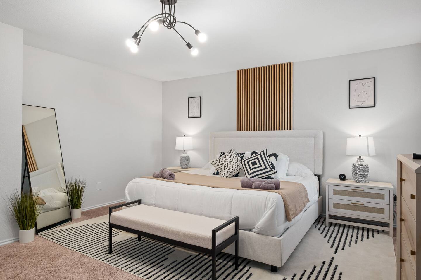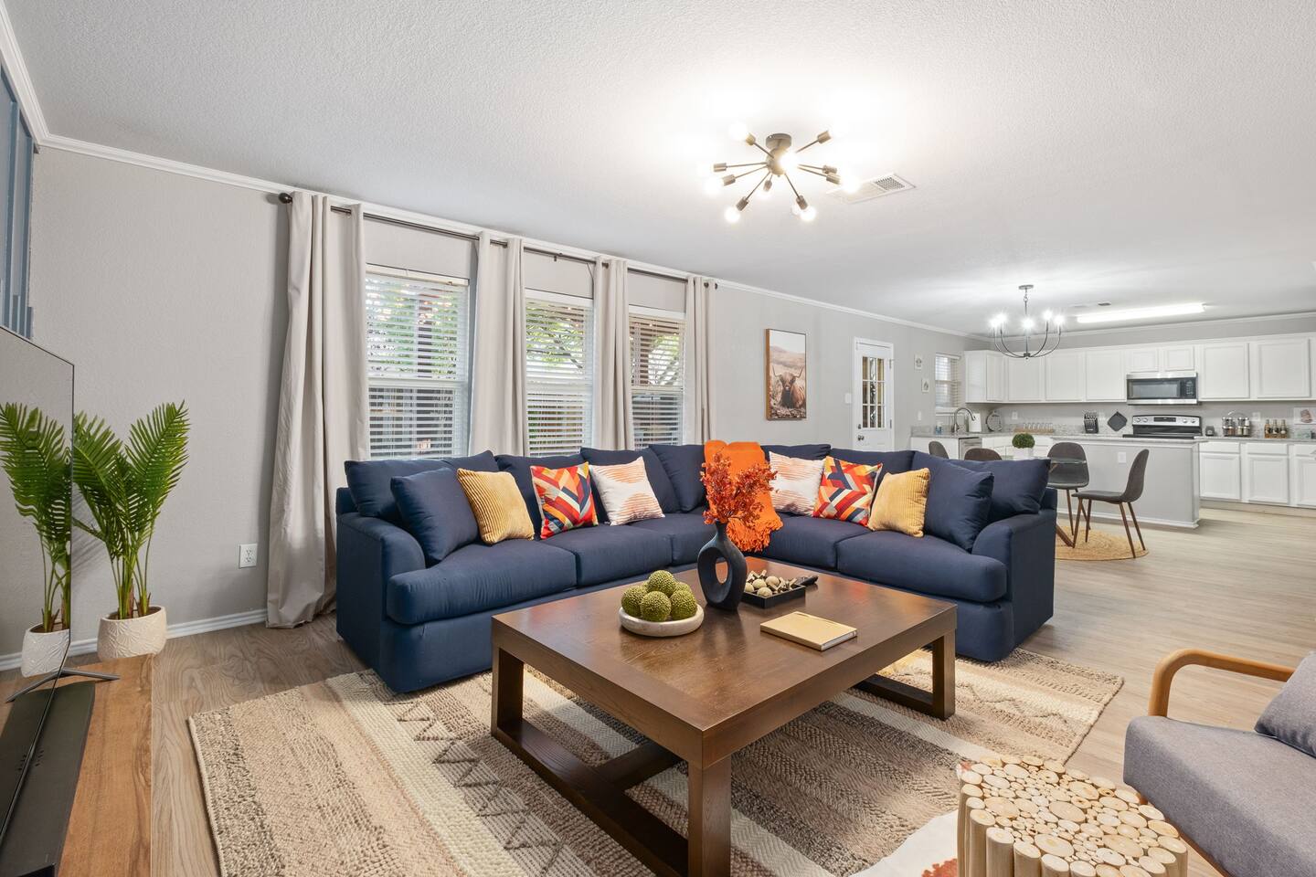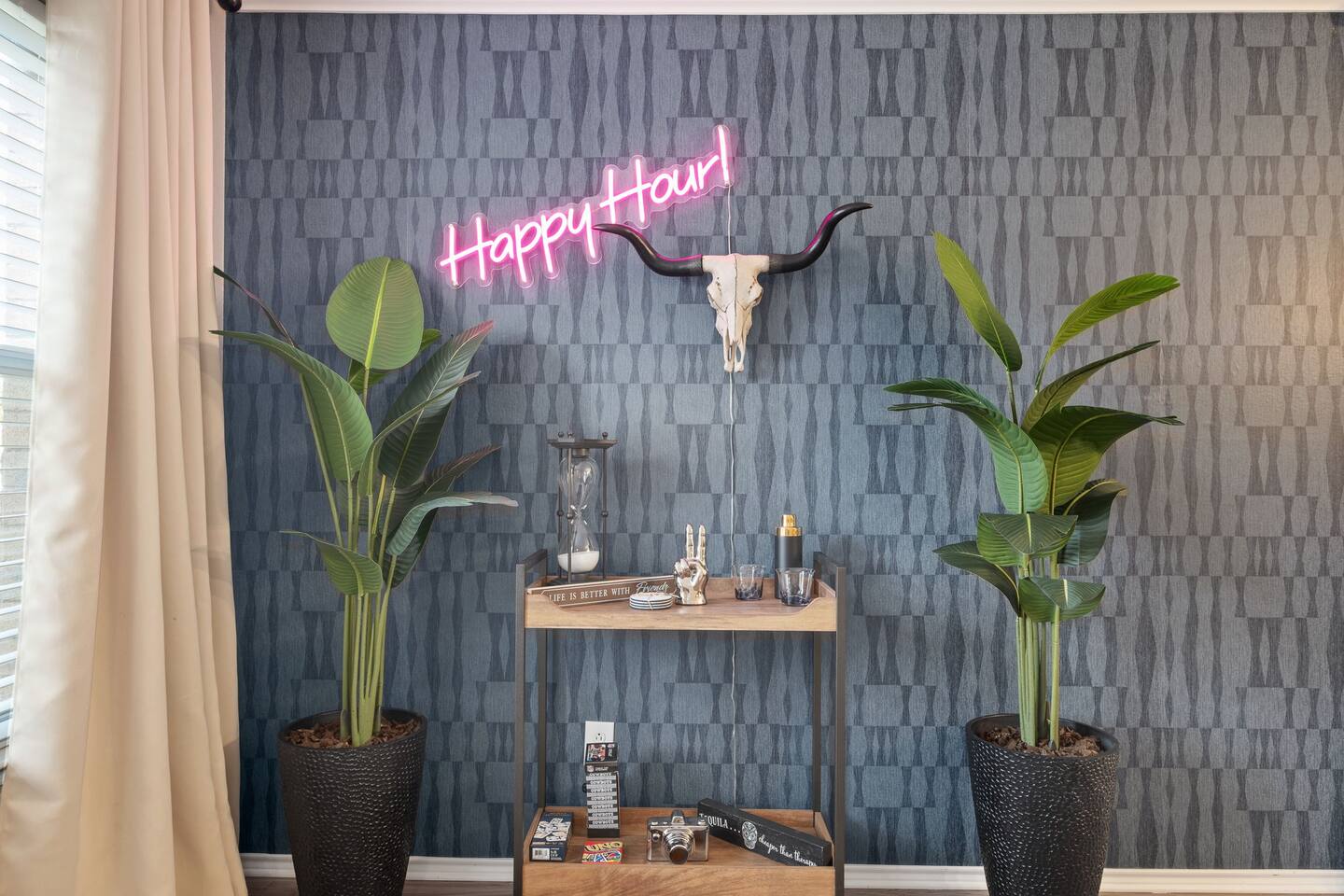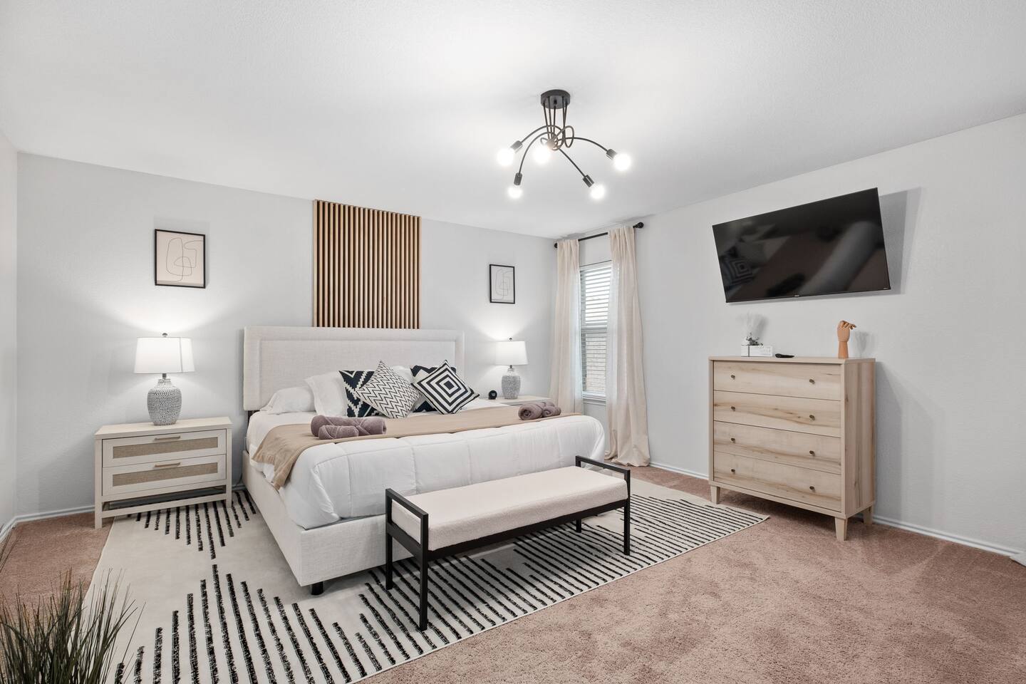 Entire Luxurious Epic Home in Grand Prairie, just outside of Dallas. This Luxurious 3,000 sq ft home comes with numerous amenities: ✔ Master bedroom with a KING size bed ✔ Game Room for the adults (Poker table and Blackjack Table) ✔ Game room for the kids (Xbox, Interactive dartboard) ✔ Outside Patio for family/group gatherings ✔ Luxury Pool table ✔ 6 separate Smart TVs ✔ Washer and Dryer on site ✔ Master bathroom with a hot tub (perfect for couples) ✔ Equipped with a BBQ ✔ Outdoor fireplace ✔ Bicycles to ride to a nearby pond park ✔ Located near a lake ✔ Social Media props ✔ Fully loaded kitchen with a smart refrigerator ✔ Backyard for outdoor activities ✔ Located near restaurants, shopping centers, and entertainment centers ✔ 15 min away from the AT&T Cowboys Stadium ✔ Close to the EPIC, Six Flags, and DFW Airport Located in a great quiet neighborhood! Minutes away from all the best dinner spots, shopping centers, parks, lakes, and coffee shops! The space: The spacious kitchen is fully equipped with many amenities and a separate glass breakfast table adjacent to a very spacious living room. A generous size dining area is intimately designed to enjoy quality time with your loved ones. Included in the dining area is the Happy Hour corner with social games – perfect for a fun time for groups. A spacious living room was specifically designed for people to relax and enjoy time with their loved ones. A roomy and very comfortable sectional is big enough to bring everyone together for a fun movie night. The living room is also decorated with a LED light prop wall – perfect to make a social media statement and create long-lasting memories. Plenty of natural light comes through the large windows, making the home very bright during the day, and enhancing the luxurious ambiance. A large backyard comes with an outdoor patio, big enough to enjoy the great outdoors. The outdoor fireplace brings everyone together and creates a chill vibe. LED lights turn on at night, giving the backyard just enough light to enjoy the scenery. The patio is covered with hanging lights which creates an atmosphere of being in your own backyard at home. It also comes with a BBQ grill to cook up those perfect steaks. Retreat to four comfortable bedrooms, which feature 5☆-resort comforts that allow you to rest after an exciting day of DFW adventures. ★ LIVING ROOM ★ It immediately feels like home! Find your place on the comfy sofa, cuddle up with a good book, watch a movie, or discuss your plans for the day. ✔ Comfortable Large 12x10ft sectional is big enough to fit the entire family ✔ 65” Smart TV with Streaming services and a sound system ✔ Coffee Table with a 3D Ticktack Toe game ✔ Two additional sofa chairs to relax on ★ KITCHEN & DINING ★ It is fully equipped with modern cooking appliances that make it suitable for preparing any meal, whether a simple breakfast, a quick snack, or a three-course gourmet dinner. There is plenty of room in this kitchen to prepare large feasts. The amenities include: ✔ Microwave ✔ Stove ✔ Toaster ✔ Drip Coffee Maker ✔ Smart Refrigerator/Freezer ✔ Dishwasher ✔ Blender ✔ Tea kettle ✔ Cooking/baking supplies ✔ Sink - Hot & Cold Water ✔ Glasses ✔ Silverware ✔ Pots & Pans ✔ Garbage Disposal Have a few drinks on the outdoor patio by the fireplace while the food is getting ready. Once it's done, serve it on the dining table and enjoy a tasty meal with your loved ones. Breakfasts, snacks, and smaller meals can easily be served on the glass breakfast table conveniently located in the kitchen area. ✔ Dining Table comfortably seats up to 12 people ✔ Happy Hour corner for the adults ✔ Social games to keep everyone engaged ★ SLEEPING ARRANGEMENTS – 4 BEDROOMS ★ After an exciting day of adventures, you will be looking to rest for an equally entertaining tomorrow. Once you are ready to relax, please make your way to these comfortable bedrooms. ♛ Master Bedroom: King-Size Bed, Smart TV, Work Desk, Dresser, Walk-in Closet, Master Bathroom with a Hot Tub ♛ Bedroom 2: Queen-Size Beds with a Closet, Dresser, Smart TV, and Work Desk ♛ Bedroom 3: Two Queen-Size Bed, Closet, and Dresser ♛ Bedroom 4: Queen-Size Bed, Smart TV, and Dreser ♛ Additional Beds: Queen-Size Pull-out sofa & Luxury Queen-size Airbed All bedrooms are equipped with a similar set of amenities. ✔ Premium Pillows, Linens, and Sheets ✔ Mirrors ✔ Night Stands ★ BATHROOMS ★ Besides the ensuite bathroom of the master bedroom, the house features one more full relaxing bathroom, and one more half bathroom. Both are stocked with fresh towels and essential toiletries to ensure you have a carefree stay. ✔ Mirror ✔ Toilet ✔ Towels ✔ Hair Dryer ✔ Essential Toiletries ★ THE LOFT★ A perfect place for fun and competitive times. The loft is made to have a fun family experience while remaining at home. Sharpen your competitive skills with ✔Luxury Pool Table ✔ Multi-player Xbox games ✔ Interactive Dartboard game Parents, be advised that the hanging wall should not be used by children without an adult supervision. ★ GAME ROOM★ “Big kids” Casino game room with its own separate AC/Heater Unit is perfect to relax your mind and have a great time with the rest of the adults at the house. Treat yourself to a fun game of Poker or Blackjack. Or simply enjoy the Smart TV or music in in the ambient atmosphere. Use the LED lights remote to give the Game Room any vibe you want. ★ BACKYARD ★ A fantastic home like this would not shine in its best light if it did not have a private, fenced area where you can relax and enjoy the mesmerizing natural surroundings. Step out into the fully fenced backyard with a covered patio covered with lights. Bring your family together around the fireplace and enjoy some private time. ✔ Outdoor Seating/Dining ✔ Game of Corn Hole ✔ Two bicycles to take for a ride around the block or to a nea