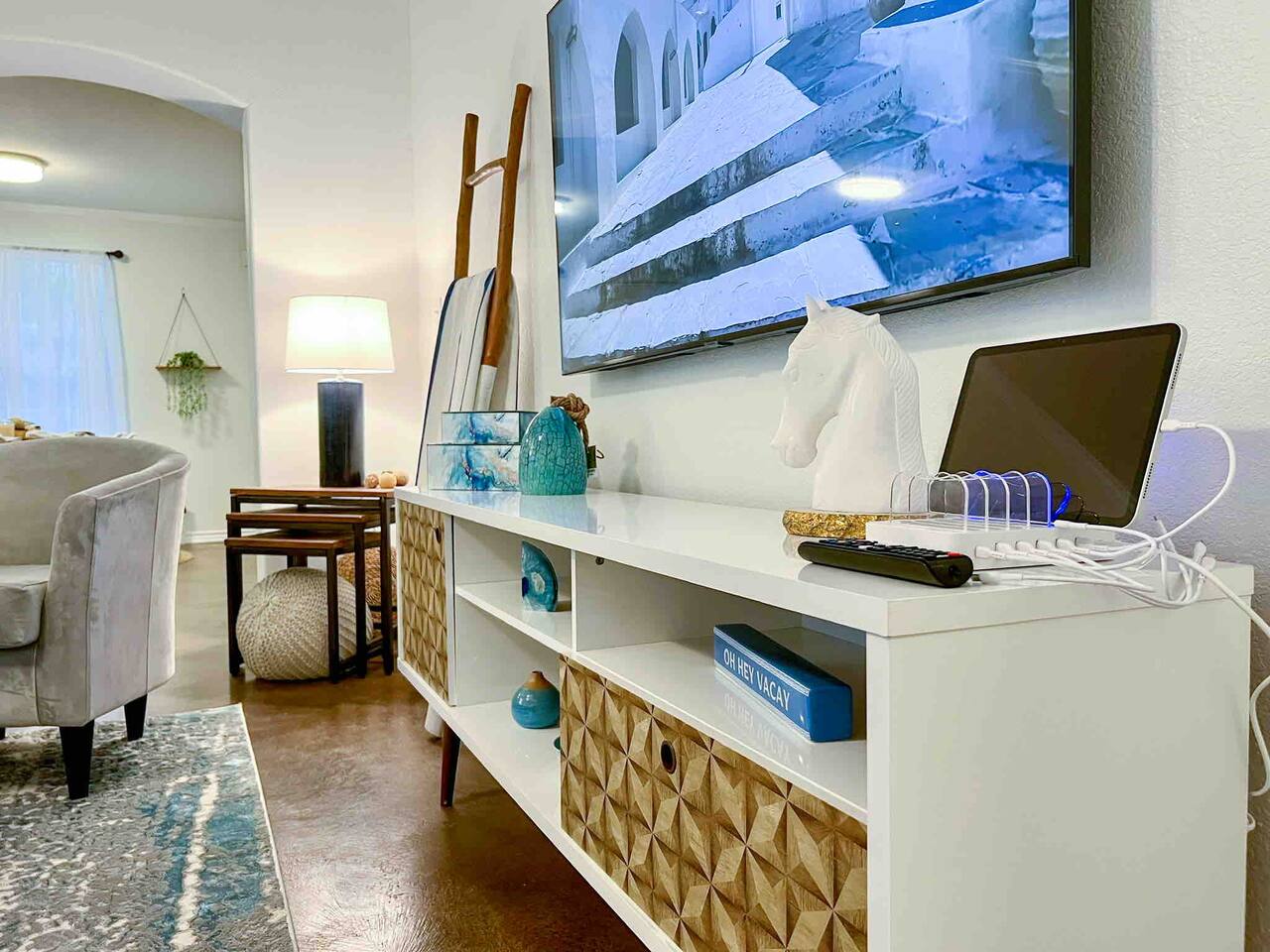 Welcome to your mediterranean vacation in Dallas. The goal of this get away is focused for groups of remote working professionals that want a clean bright place to work while in Dallas. If you are not familiar with Dallas then let me introduce you to the neighborhood of Bishop Arts. This was once a forgotten part of the city that in the last 10 years became the new hot spot. This home is around a 10 minute walk to the epicenter of Dallas culture.