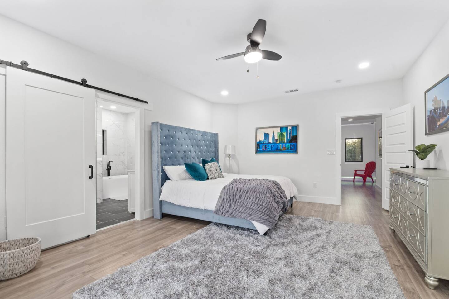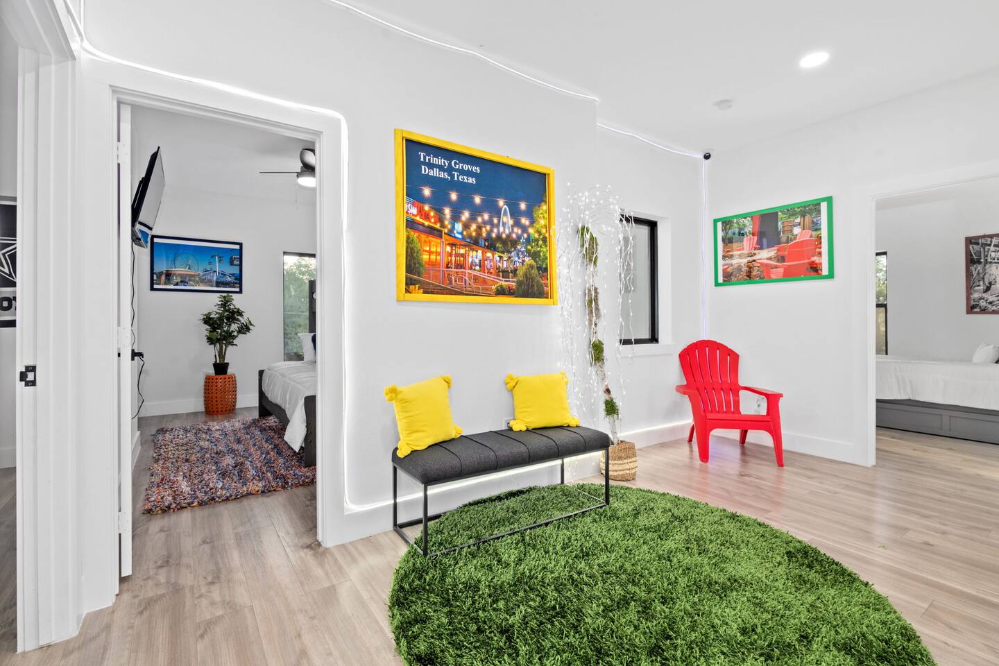 Modern and stylish, this 5BR home is centrally located in Trinity Groves and only a few miles away from the best things to do in Dallas! Check out the popular Margaret Hunt Hill bridge and eat at the delicious Saint Rocco’s! Spend your day exploring the town and spend your nights relaxing in the beautifully furnished outdoor patio while enjoying the sunset! Featuring 7 plush beds and plenty of home entertainment, this getaway is ideal for large groups looking to vacation in comfort and luxury!