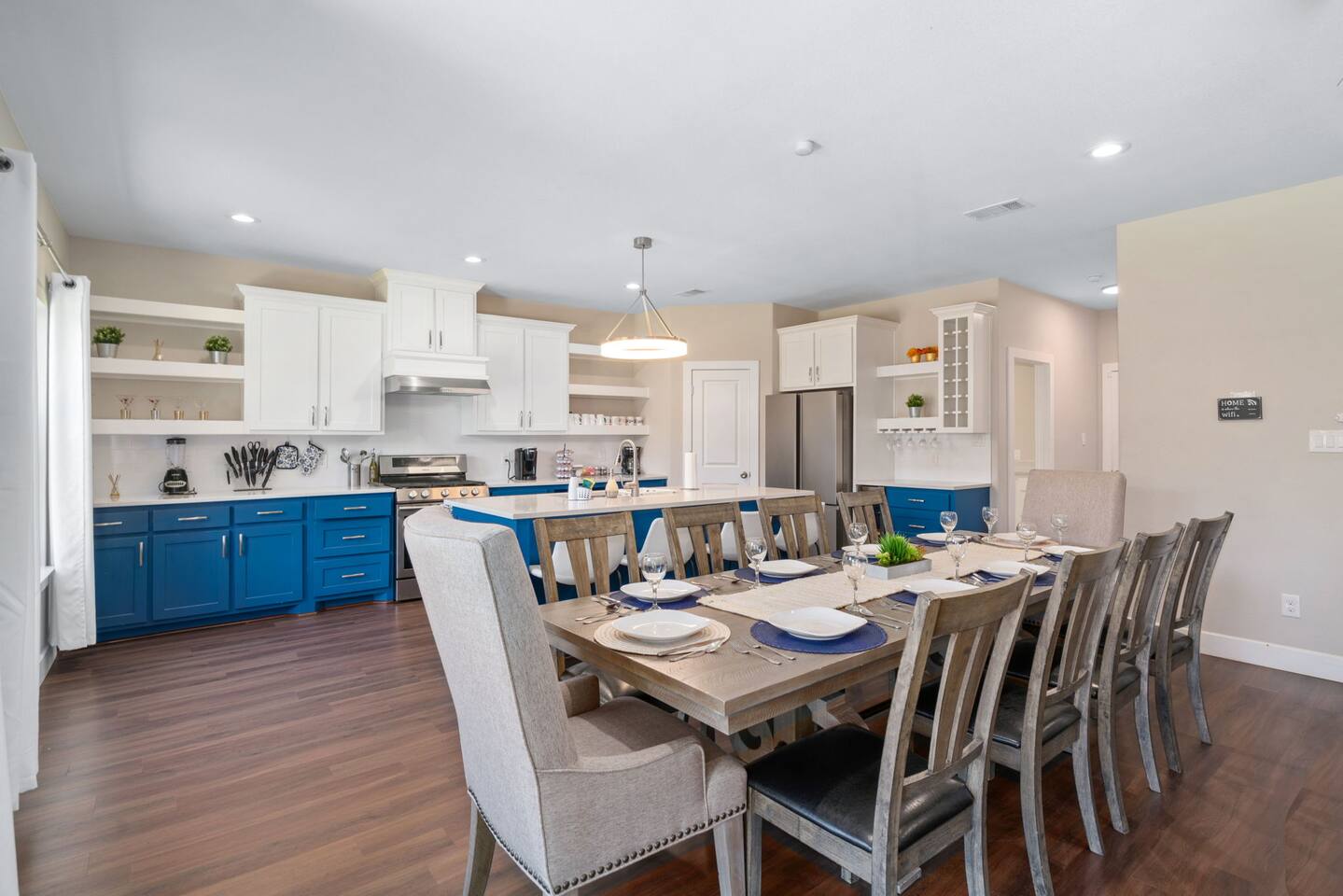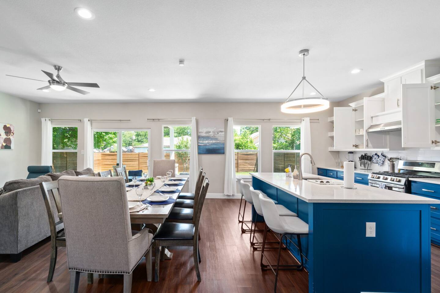 Bright and spacious, this comfy farmhouse is conveniently located in the heart of dallas! With so much to do 4 minutes away, check out Trinity Groves’ Margaret Hunt Hill Bridge and restaurants such as Saint Rocco’s. Only 10 minutes from downtown Dallas, this big home features a fully stocked roomy kitchen perfect for dinners as well as bathrooms with plentiful necessities for whatever you may need! Ideal for large groups looking for comfortable getaway and those who want a home away from home.