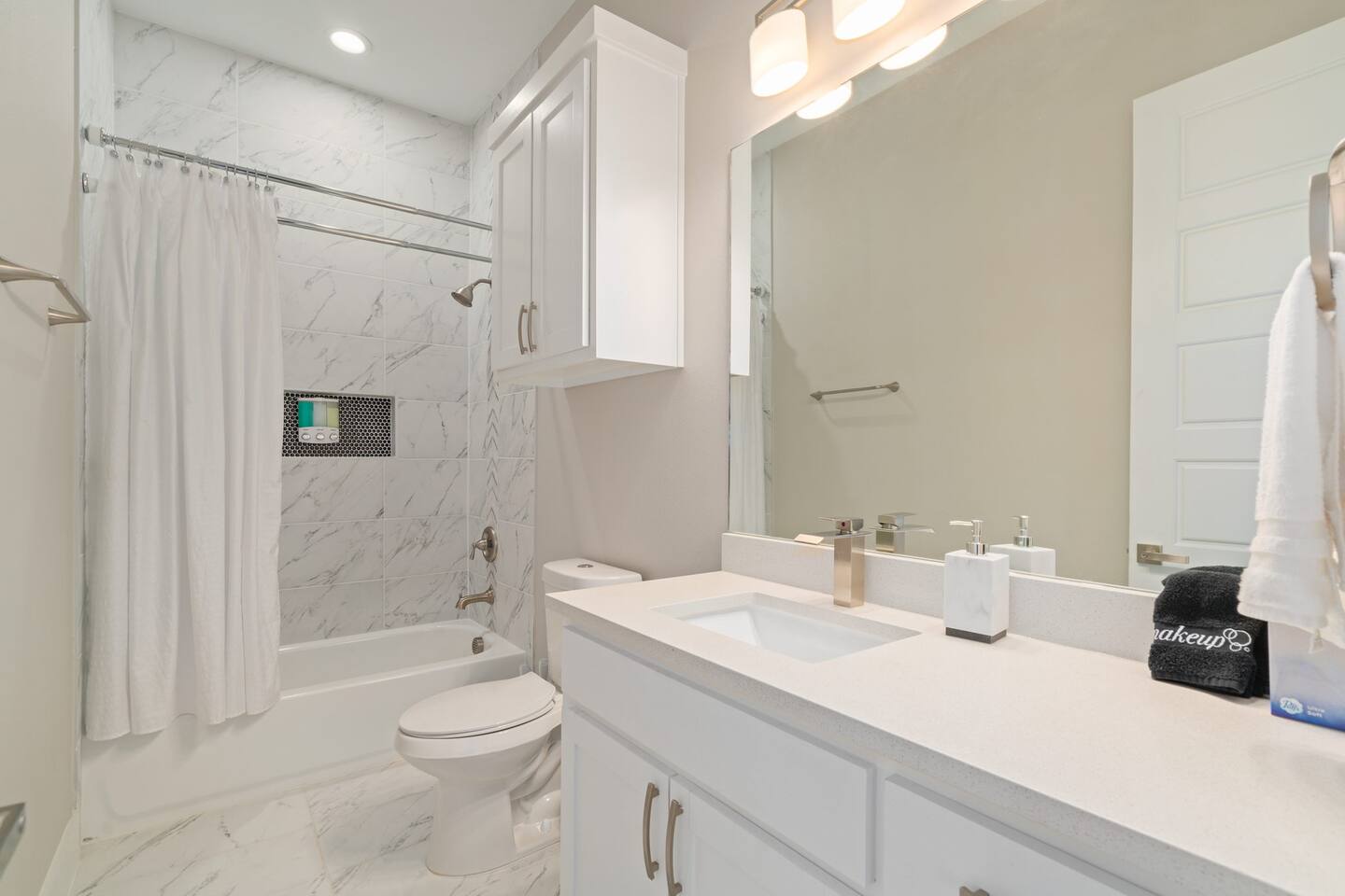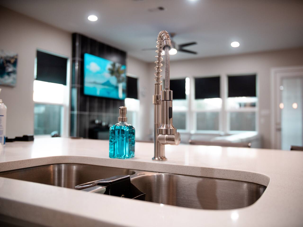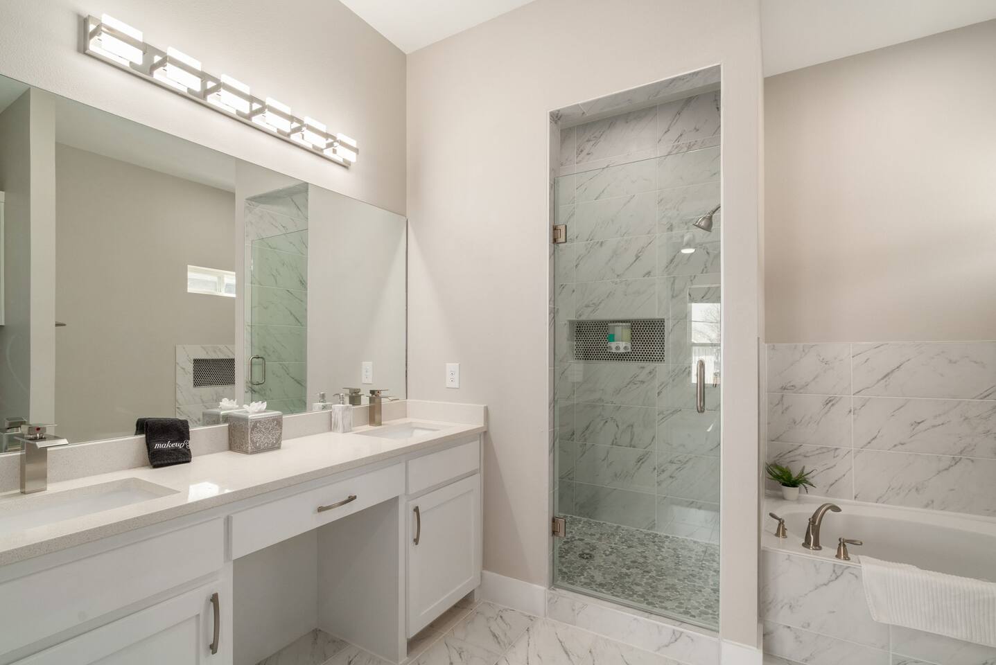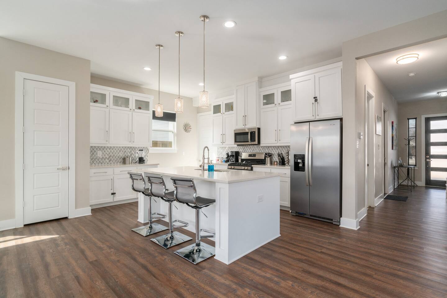 This modern home welcomes you with open arms as you enter the living room that features sleek and contemporary decor, relax in style while you catch up on the news or watch the game on the 77” HDTV above the electric fireplace and get comfy on the large leather sectional! The Art House features a fully stocked kitchen with everything an at-home chef could need to make great meals as well as a gigantic dining table that seats 12 and is made to host big feasts! The kitchen is equipped with a plethora of cooking utensils, spices, unique stoneware, and stylish silverware to compliment your celebratory dinners. There is also a second living room upstairs that includes an HDTV and a large leather sectional next to a beautiful custom accent wall. The Art House provides ample common space for your guests. Each aspect of the home was designed with intention and purpose, such as the all white towels and sheets for that hotel feel. Get a rejuvenating sleeping experience with our bedrooms that feature at least new queen size mattresses and black-out blinds. All bedrooms are located on the second story. The master bedroom contains a king size memory foam bed for a comfortable night's sleep after exploring Dallas! Our guests enjoy the mattresses so much, they inquire what mattresses we use! Grab a cup of coffee and enjoy the sunrise outside on the balcony featured in the master bedroom that has a partial skyline view of Dallas! There are three full bathrooms total and the tankless water heater provides hot water continuously to accommodate large groups getting ready at the same time. One bathroom features a combination stand-in shower/tub, the second features a spacious stand-in shower and the master bathroom features a stand-in shower and a separate jetted bathtub. The master bathroom also includes double vanity sinks and provides a great place to relax and pamper at the beginning or end of your day!