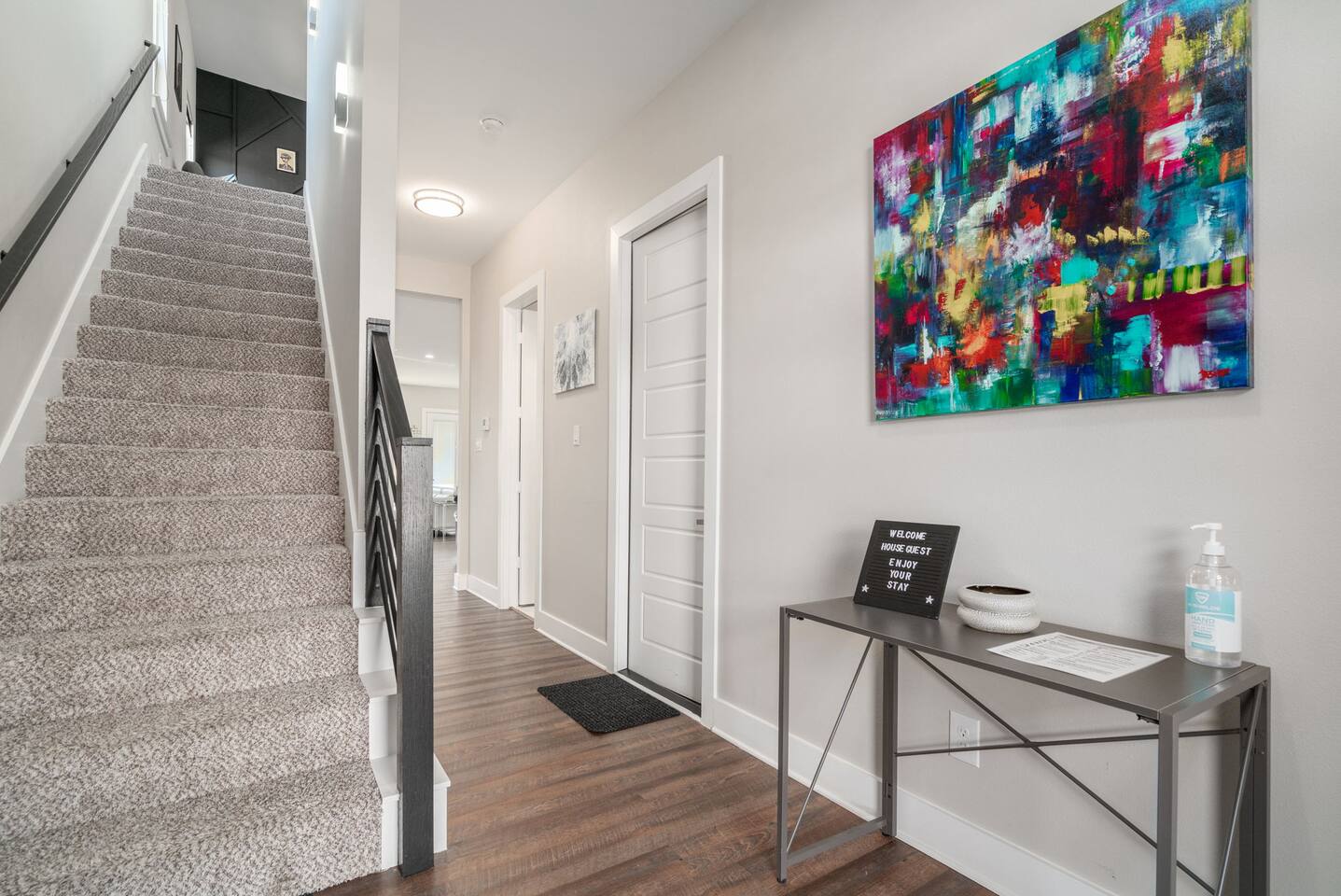 The Art House has a one car garage and can accommodate up to three cars in the driveway and one on the curb. The neighborhood has plenty of parking as long as it is done in the driveway and appropriately on the street in front of the house, not blocking the driveway of other houses. All spaces within the home are accessible to the guests except rooms such as the supply closet, utility room and/or any attics/crawl spaces.